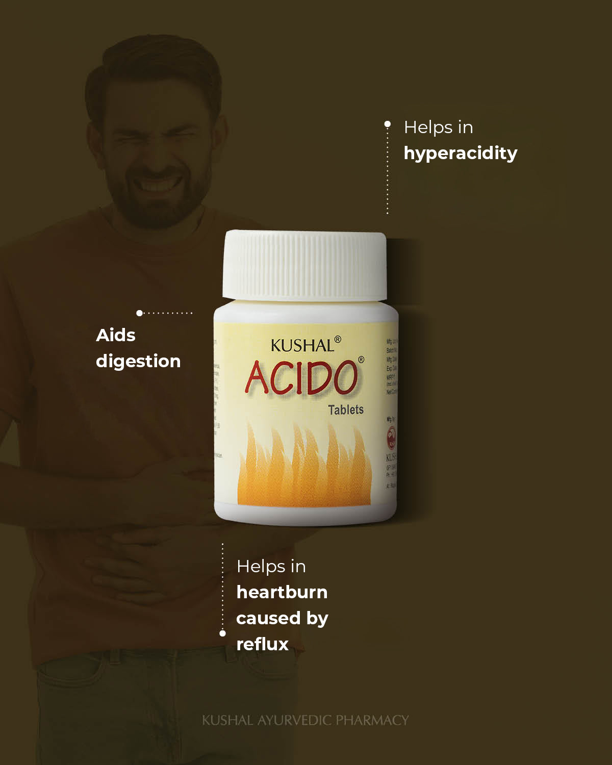 Indigestion mainly caused by fried, spicy, sour, fermented foods, and unhealthy lifestyle, results in acidity. Acido helps prevents the excess secretion of gastric acids. It is also effective in nausea caused in hyperacidity.